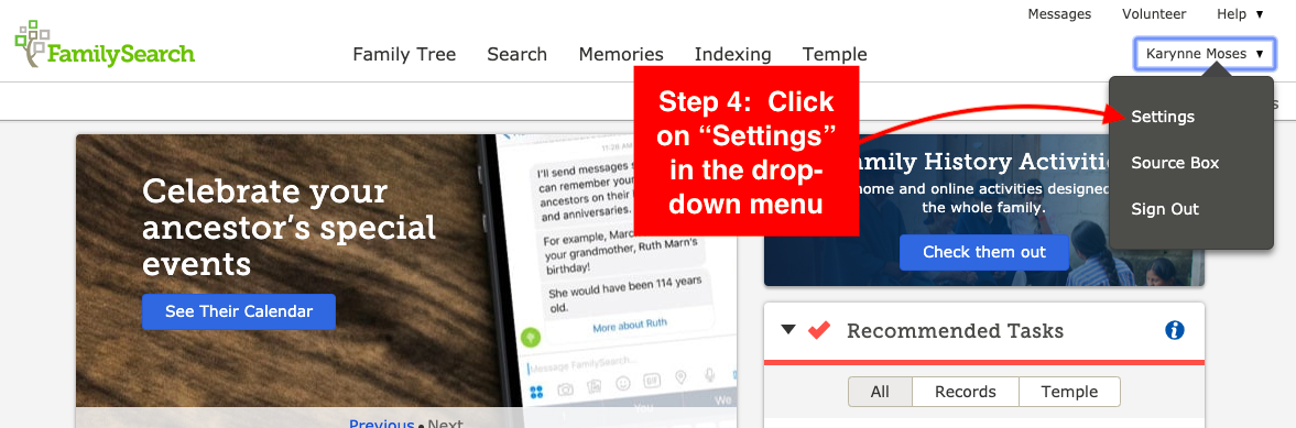 Step 5: Copy the username and helper number, and send them to the person who will be helping you with your FamilySearch account.